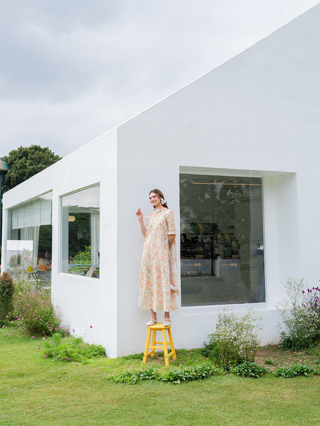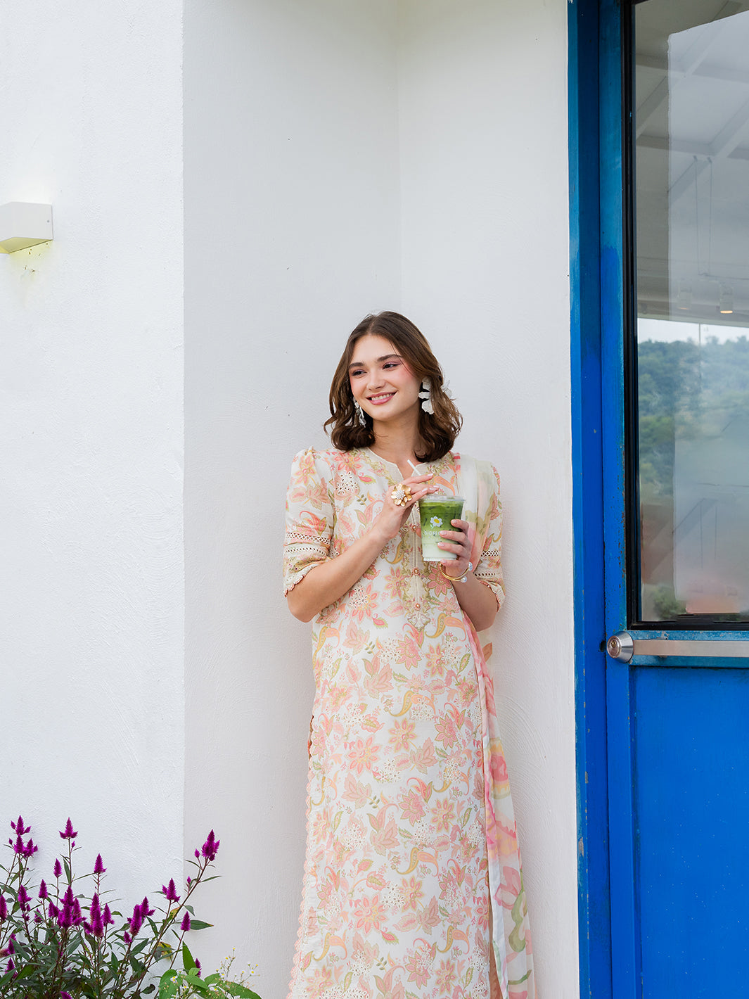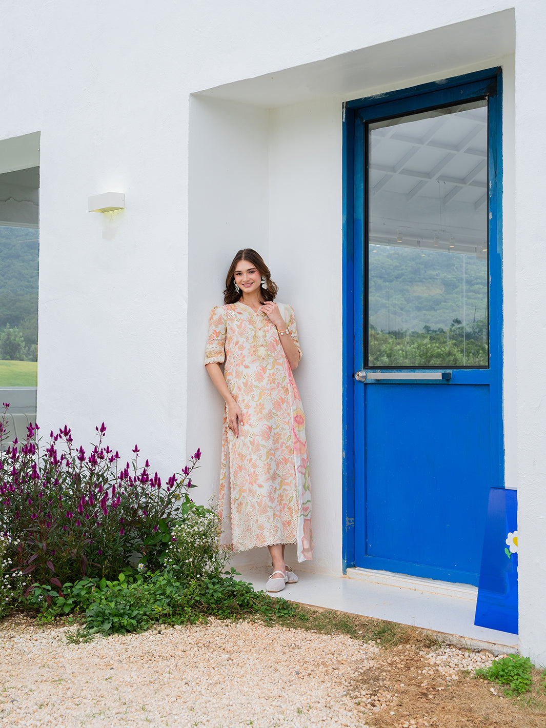 Avelyn from the Oh So Cherry edit is crafted in soft digital printed lawn, featuring an embroidered digital printed front and sleeves paired with a printed back for a harmonious design. The look is refined with a delicately finished organza neckline, adding a subtle touch of sophistication. Completed with a digitally printed chiffon dupatta and plain dyed trousers, Avelyn offers a graceful blend of comfort, elegance, and effortless everyday style.