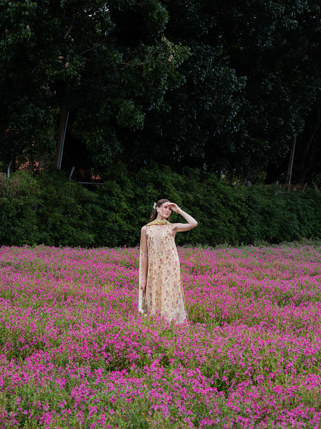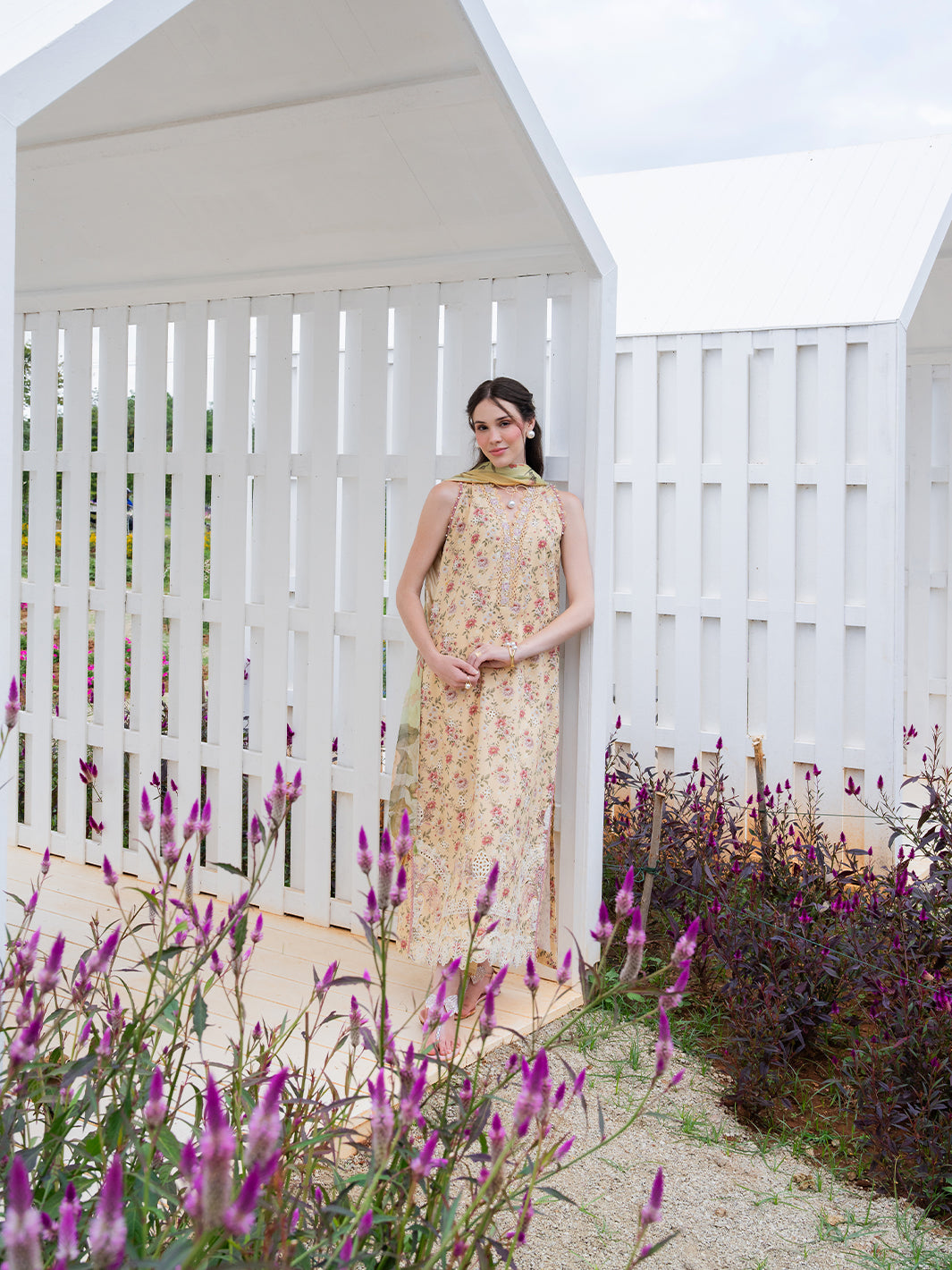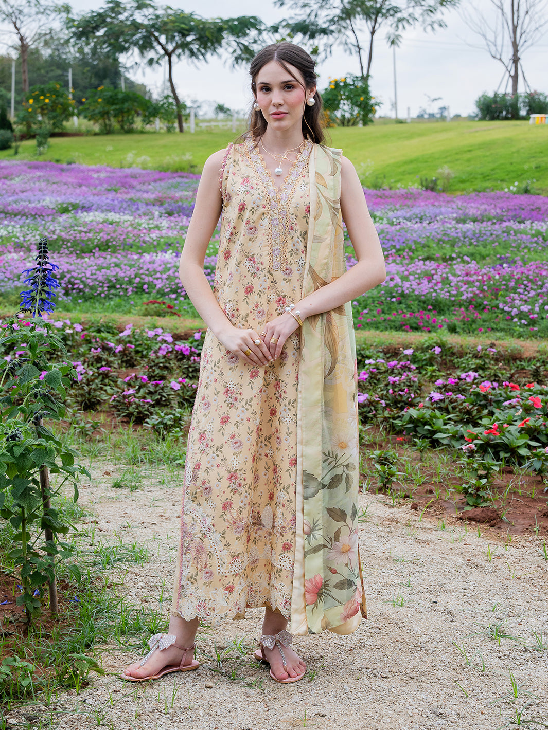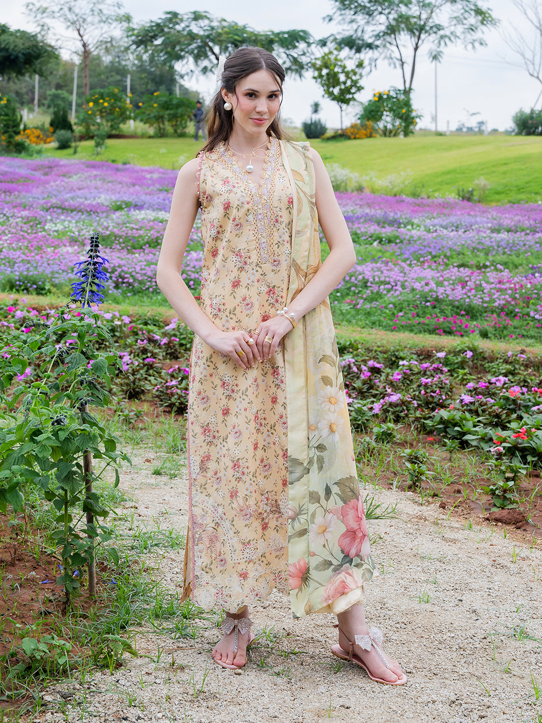 Aven from the Oh So Cherry edit is crafted in soft digital printed lawn, featuring intricate embroidered detailing on the front and sleeves, complemented by a printed back. The shirt is refined with a delicate organza patch on the neckline, adding a subtle touch of sophistication. Paired with a digitally printed chiffon dupatta and plain dyed trousers, Aven offers a perfect blend of comfort, elegance, and airy summer grace — a timeless choice for warm, sunlit days.