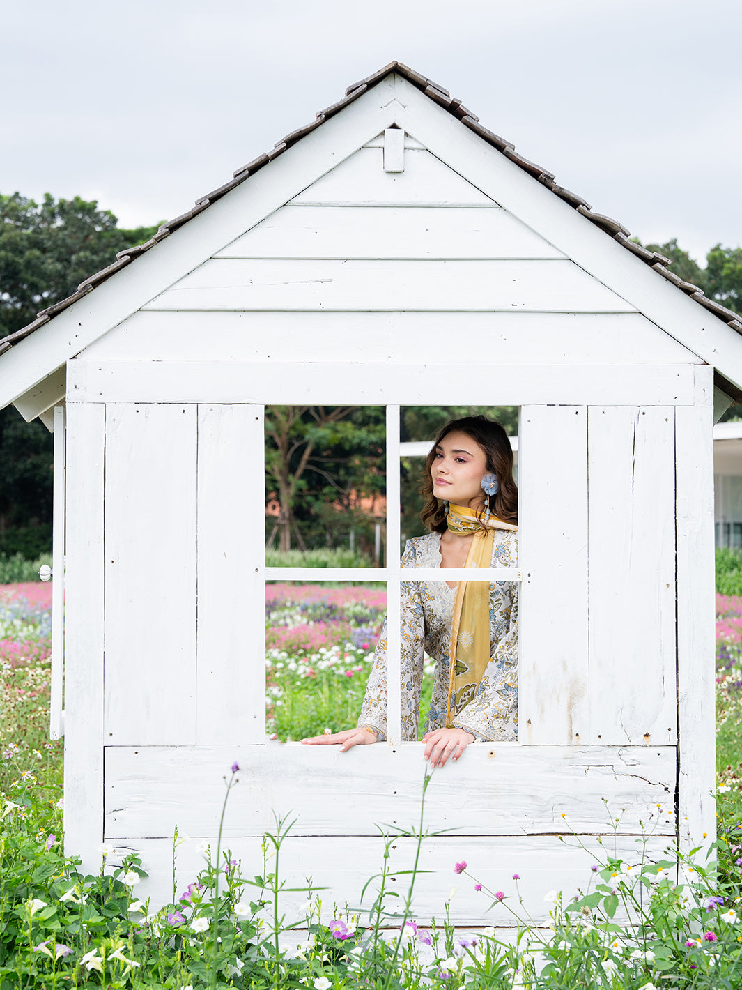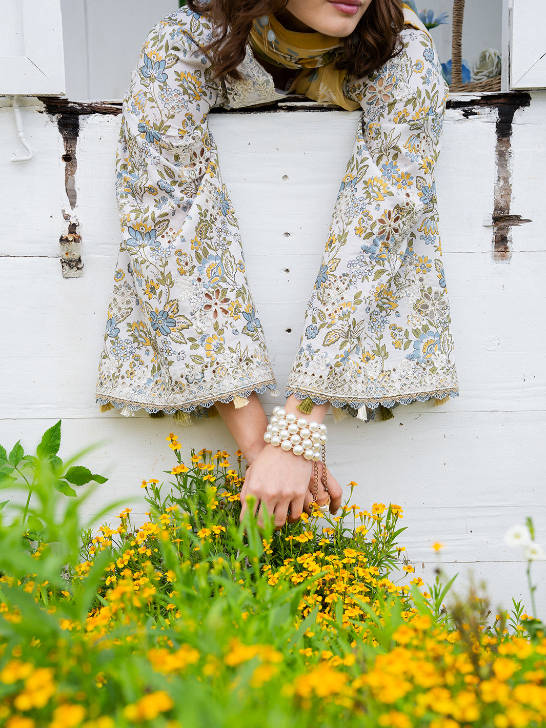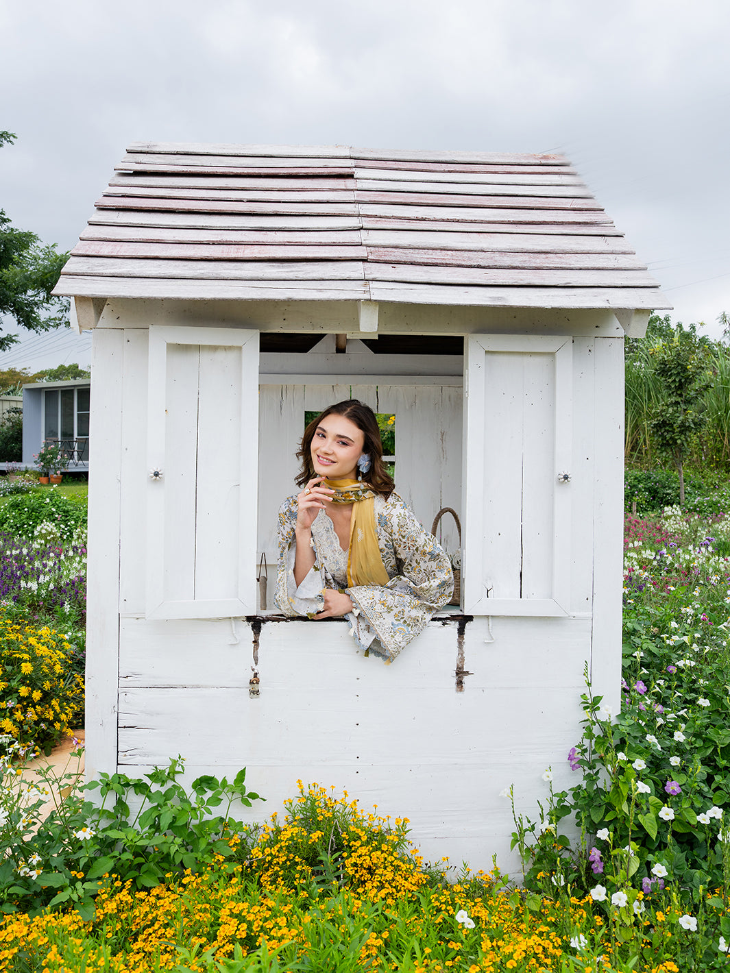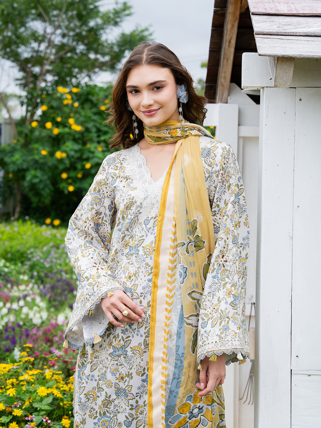 Enaa from the Oh So Cherry edit is crafted in soft digital printed lawn featuring an embroidered digital printed front and sleeves with a printed back for a cohesive finish. The design is elevated with an organza neckline and delicately placed organza side-slit borders, adding subtle refinement to the overall look. Paired with a digitally printed chiffon dupatta and plain dyed trousers Enaa offers a balanced blend of comfort, detail, and everyday elegance.