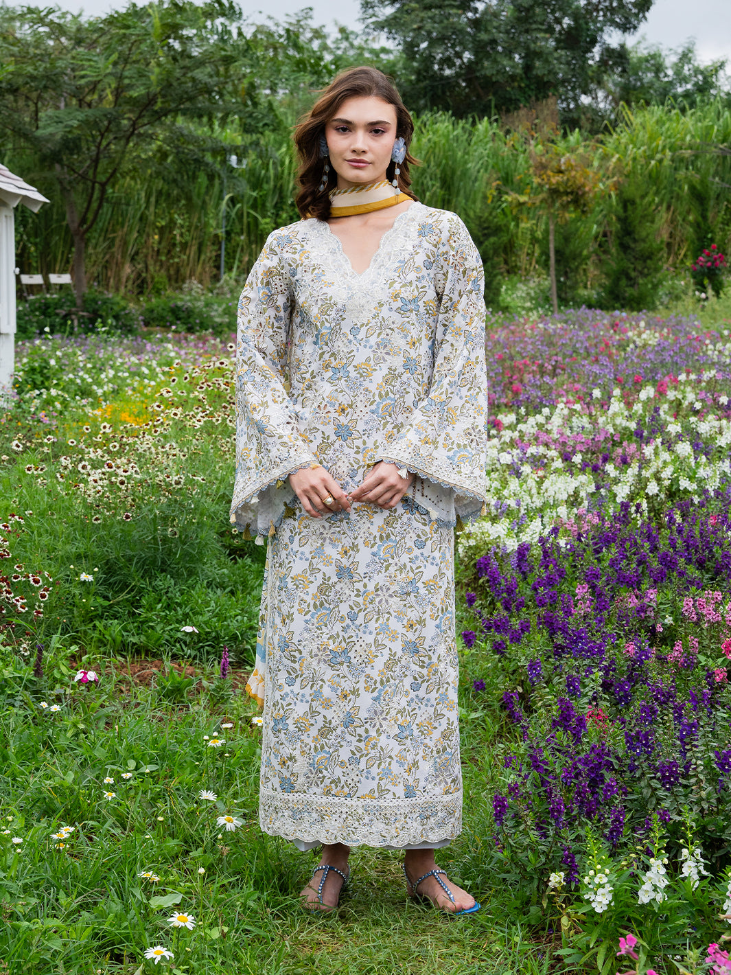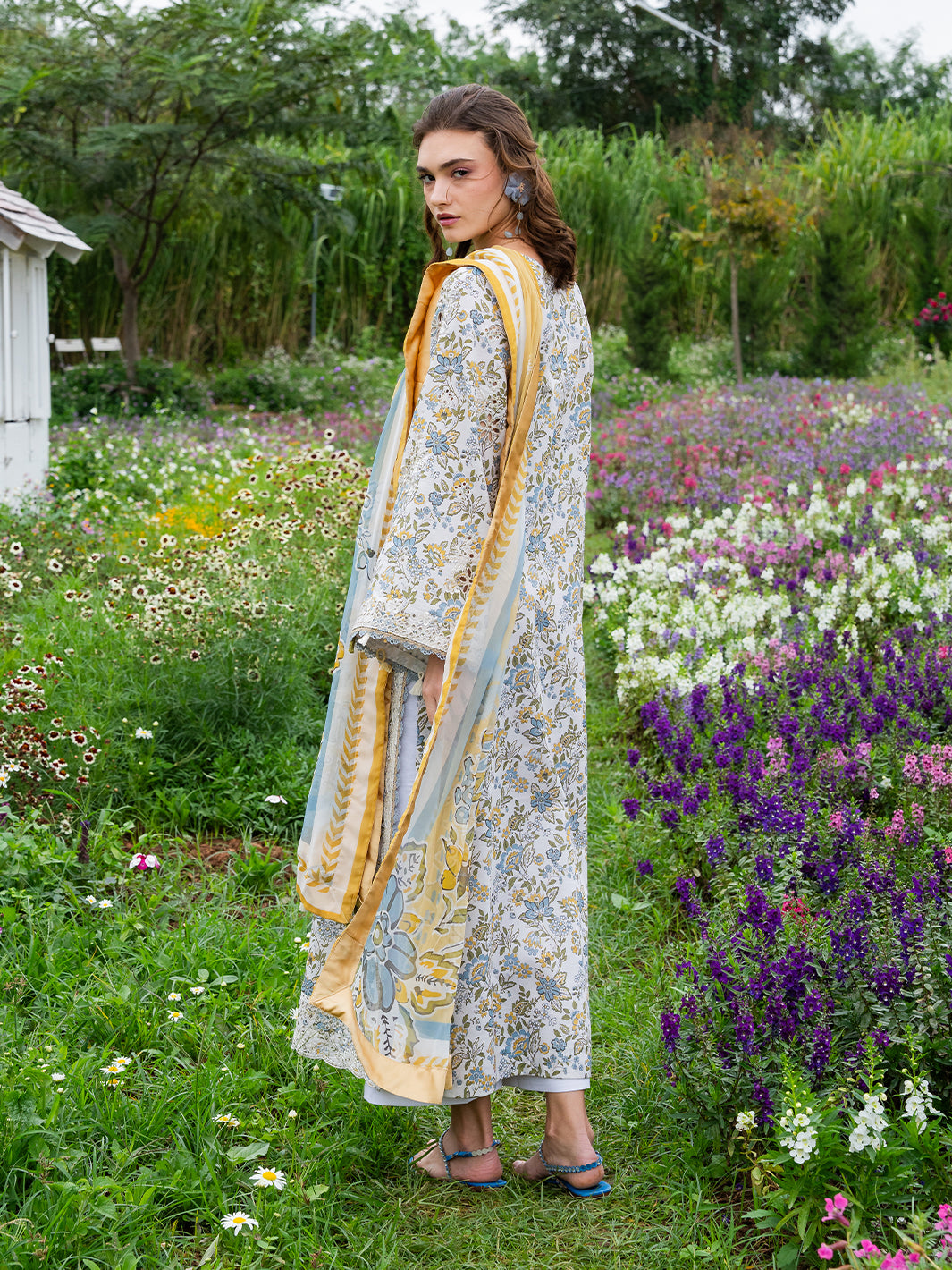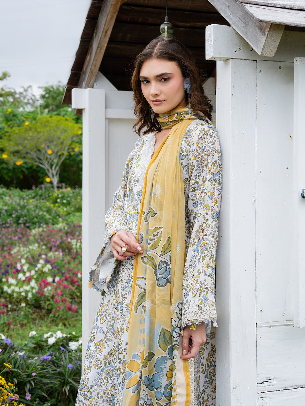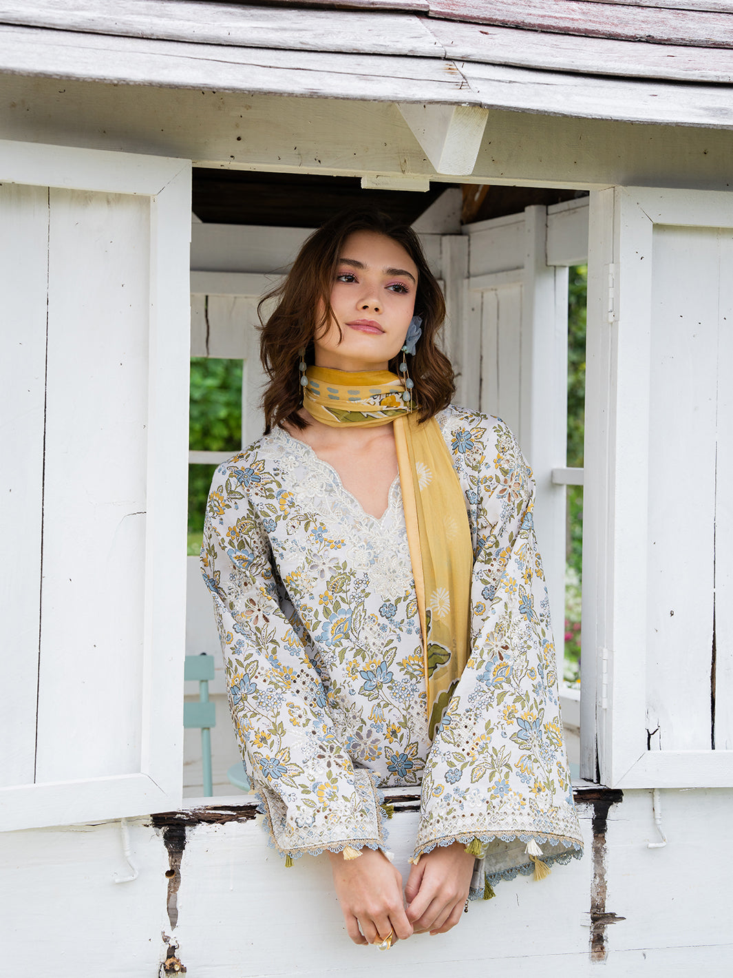 Enaa from the Oh So Cherry edit is crafted in soft digital printed lawn featuring an embroidered digital printed front and sleeves with a printed back for a cohesive finish. The design is elevated with an organza neckline and delicately placed organza side-slit borders, adding subtle refinement to the overall look. Paired with a digitally printed chiffon dupatta and plain dyed trousers Enaa offers a balanced blend of comfort, detail, and everyday elegance.
