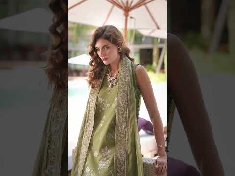 EVIA is a vision of contemporary prestige. This Lawn creation features a decadently embroidered front and sleeves, enhanced by a signature organza border for a touch of airy refinement. The outfit is grounded by smooth dyed cotton trousers and elevated by a stunning Slub Monark dupatta, known for its rich texture and intricate embroidered finish. It is a seamless fusion of artisanal detail and modern luxury