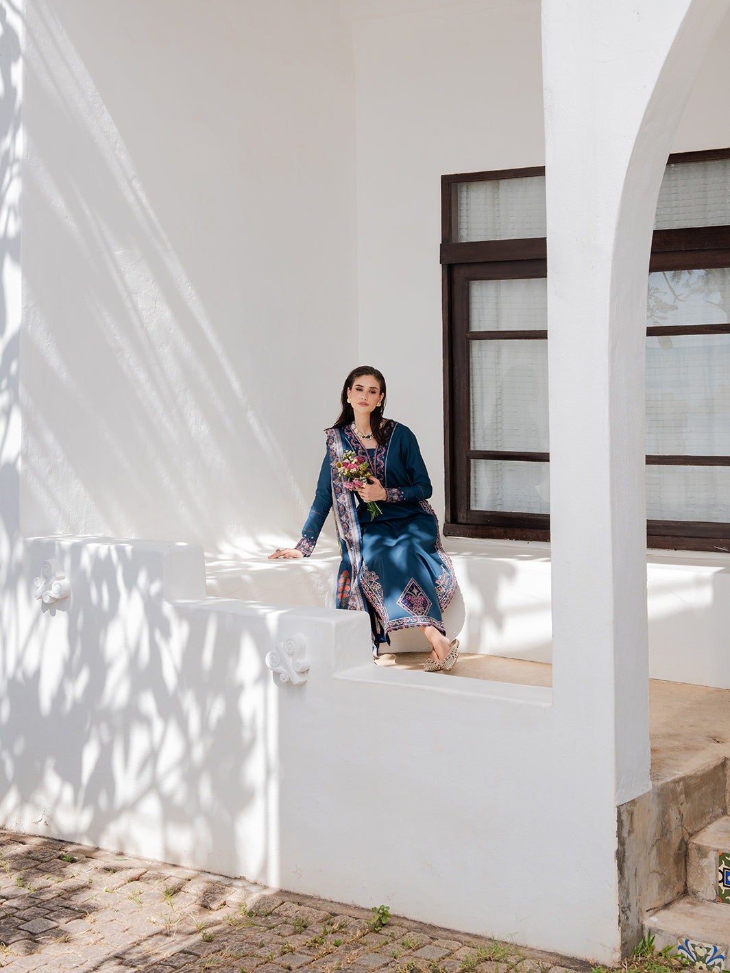 From the Dareen Luxury Lawn collection Zeenat is a masterclass in elegance and refined craftsmanship Crafted in soft breathable lawn features intricate embroidery on the front and sleeves complemented by a plain dyed back for a balanced sophisticated look. Thoughtful details like a front slit organza front border patch and neckline patch add subtle luxury while the digitally printed silk dupatta introduces a touch of vibrant artistry completed with plain dyed cotton trousers.