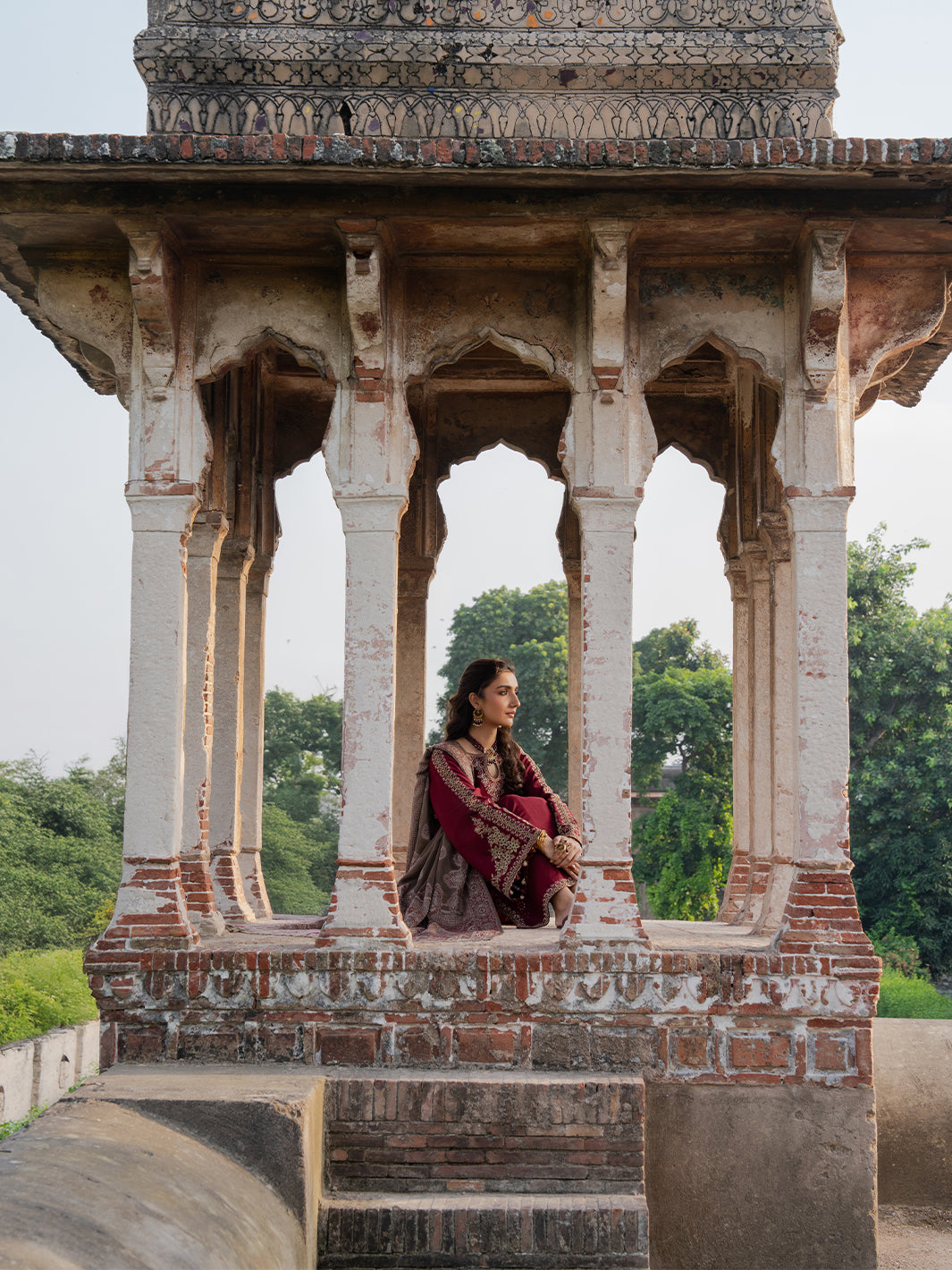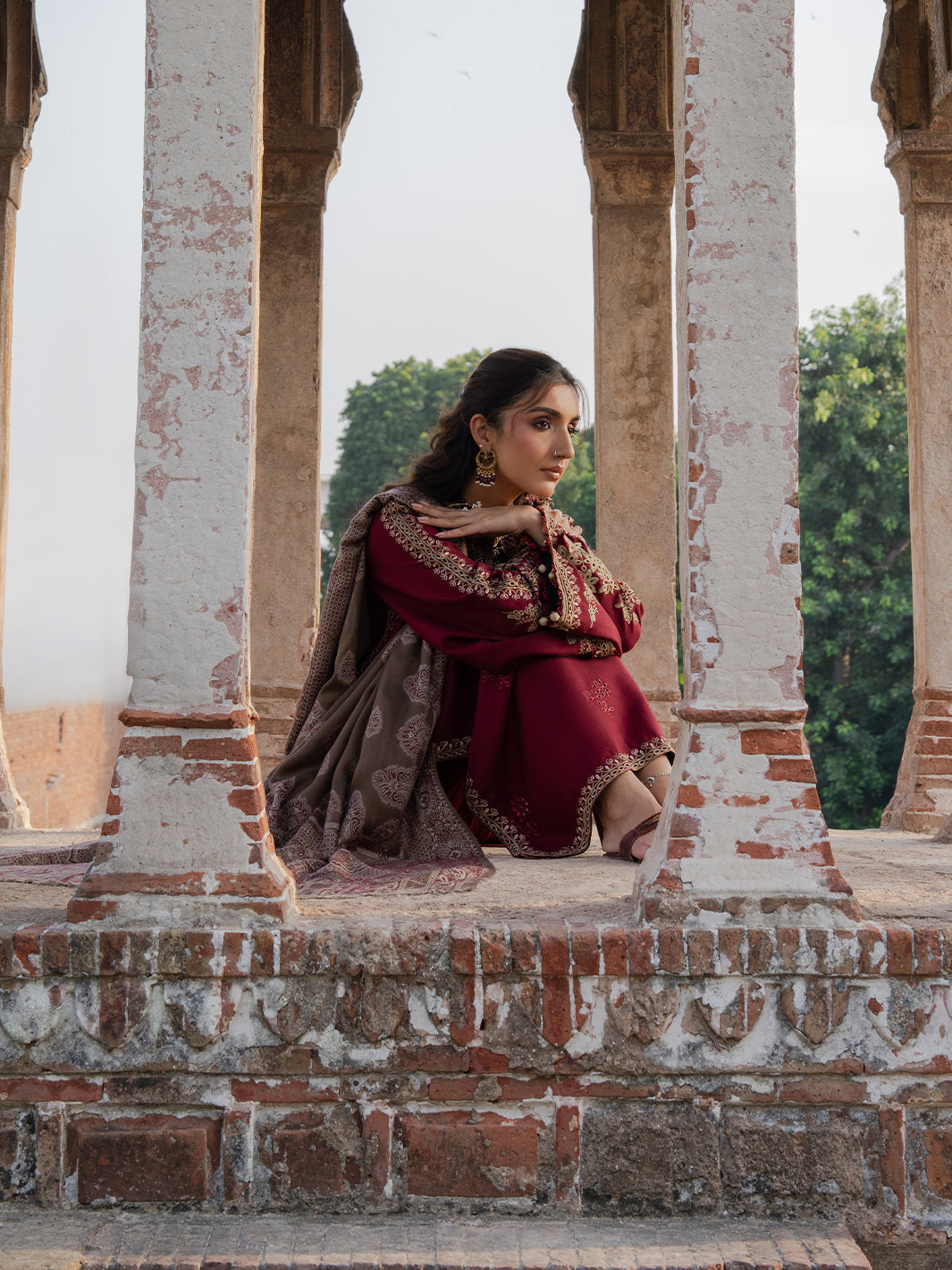 Naqsh from Izel’s nooraniyat Embroidered Winter Collection ’25 is a masterpiece of subtle elegance and refined craftsmanship. Woven from luxurious Italian wool, the shirt features an intricately embroidered front and sleeves that add depth and artistry to the design, contrasted with a plain-dyed back for a clean, minimal finish. The ensemble is completed with a rich woolen jacquard shawl for warmth and texture, along with a plain-dyed trouser for effortless sophistication—making Naqsh a graceful addition to your winter style.