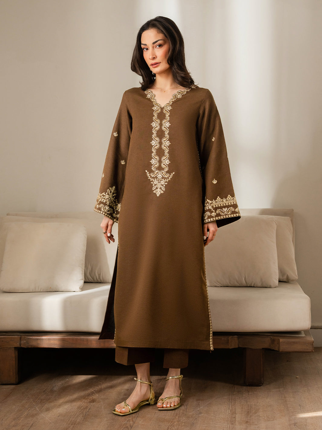 Introducing timeless elegance with Livia from the Summer Karandi Pret collection. The embroidered karandi shirt and plain dyed karandi trousers create a look that is both polished and comfortable.