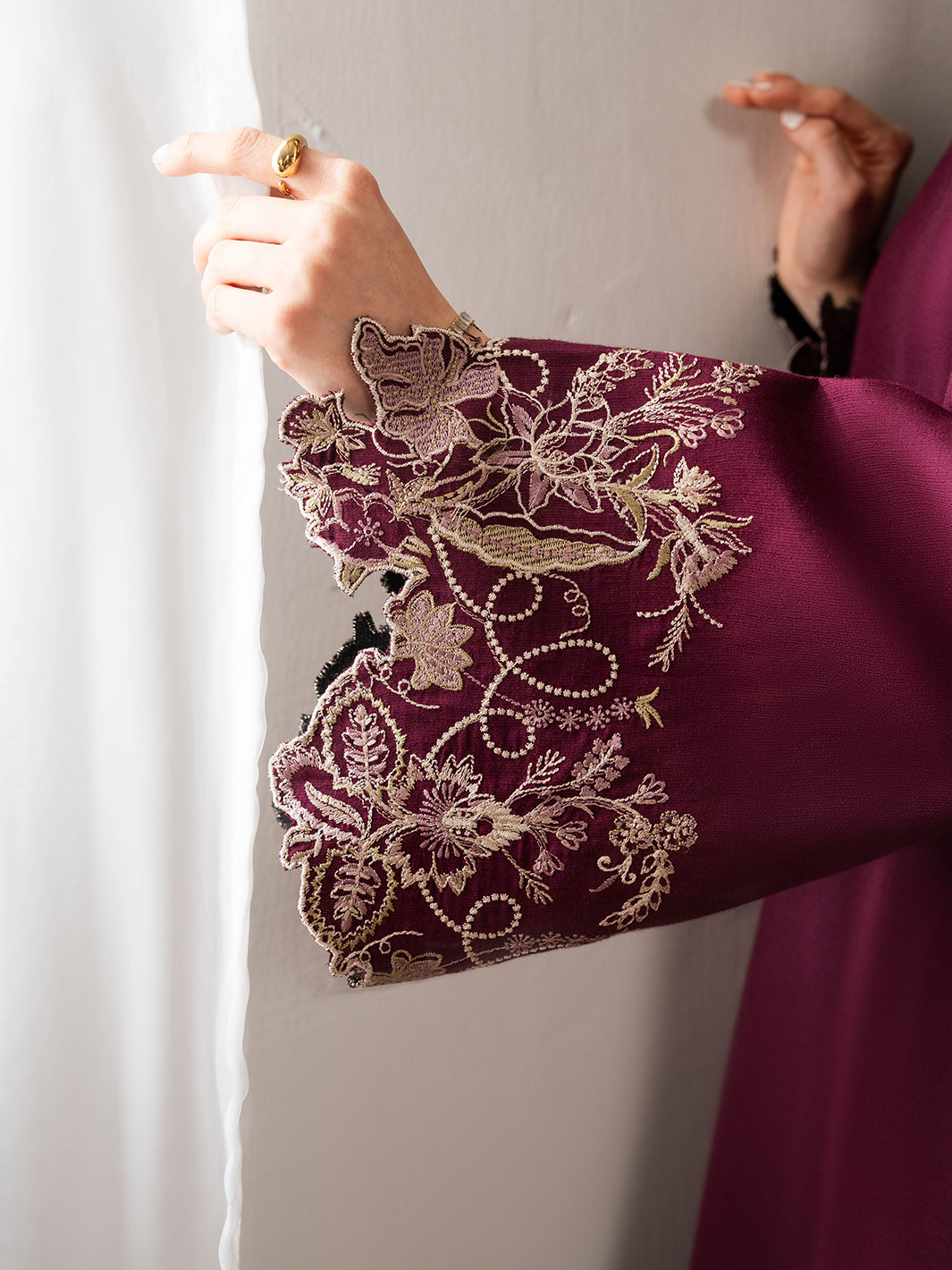 Elevate your summer wardrobe with Mirabel from the Summer Karandi Pret collection. The embroidered karandi shirt and plain dyed karandi trousers combine classic charm with modern sophistication.